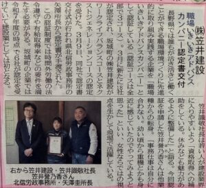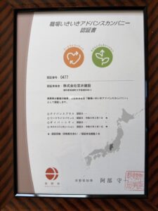 弊社はこの度、長野県より『職場いきいきアドバンスカンパニー』認証を頂き3月9日(月)に認証書交付式が行われました。